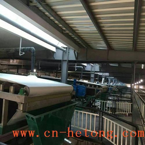 真空带式过滤机是我厂在引进国外同类产品技术基础上,自主开发的一种过滤固液分离设备。该设备采用了固定真空盒,胶带在真空盒上滑动,真空盒与胶带间构成运动密封的结构型式。它能连续自动完成过滤、滤饼洗涤、卸渣、滤布再生等工艺操作,并且母液有与滤饼洗涤液可以分段收集。具有过滤效率高、生产能力大、洗涤效率好,滤饼水分低、操作灵活、维护简单等优点。胶带机经我厂多年改进和完善,产品的技术性能和质量已达到了国际先进水平,已广泛应用于冶金、矿山、化工、电厂湿法烟气脱硫、煤化工、造纸、食品、制药及环保等行业。