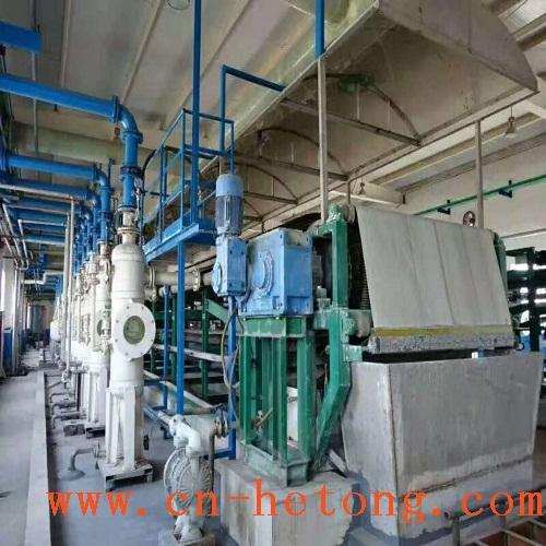 真空带式过滤机是我厂在引进国外同类产品技术基础上,自主开发的一种过滤固液分离设备。该设备采用了固定真空盒,胶带在真空盒上滑动,真空盒与胶带间构成运动密封的结构型式。它能连续自动完成过滤、滤饼洗涤、卸渣、滤布再生等工艺操作,并且母液有与滤饼洗涤液可以分段收集。具有过滤效率高、生产能力大、洗涤效率好,滤饼水分低、操作灵活、维护简单等优点。胶带机经我厂多年改进和完善,产品的技术性能和质量已达到了国际先进水平,已广泛应用于冶金、矿山、化工、电厂湿法烟气脱硫、煤化工、造纸、食品、制药及环保等行业。