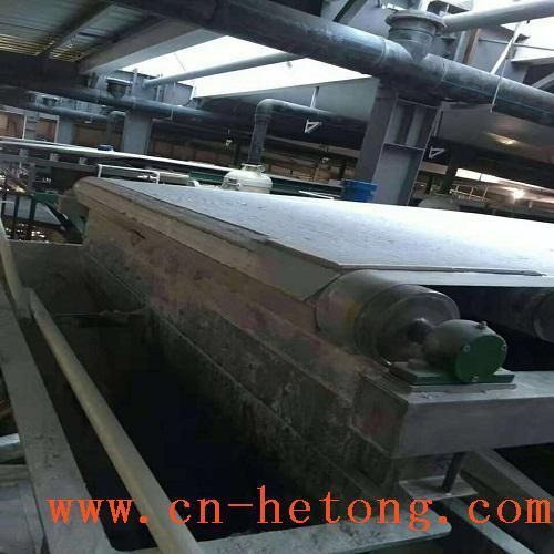 真空带式过滤机是我厂在引进国外同类产品技术基础上,自主开发的一种过滤固液分离设备。该设备采用了固定真空盒,胶带在真空盒上滑动,真空盒与胶带间构成运动密封的结构型式。它能连续自动完成过滤、滤饼洗涤、卸渣、滤布再生等工艺操作,并且母液有与滤饼洗涤液可以分段收集。具有过滤效率高、生产能力大、洗涤效率好,滤饼水分低、操作灵活、维护简单等优点。胶带机经我厂多年改进和完善,产品的技术性能和质量已达到了国际先进水平,已广泛应用于冶金、矿山、化工、电厂湿法烟气脱硫、煤化工、造纸、食品、制药及环保等行业。